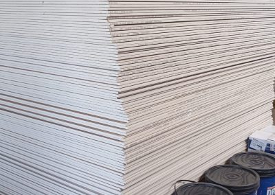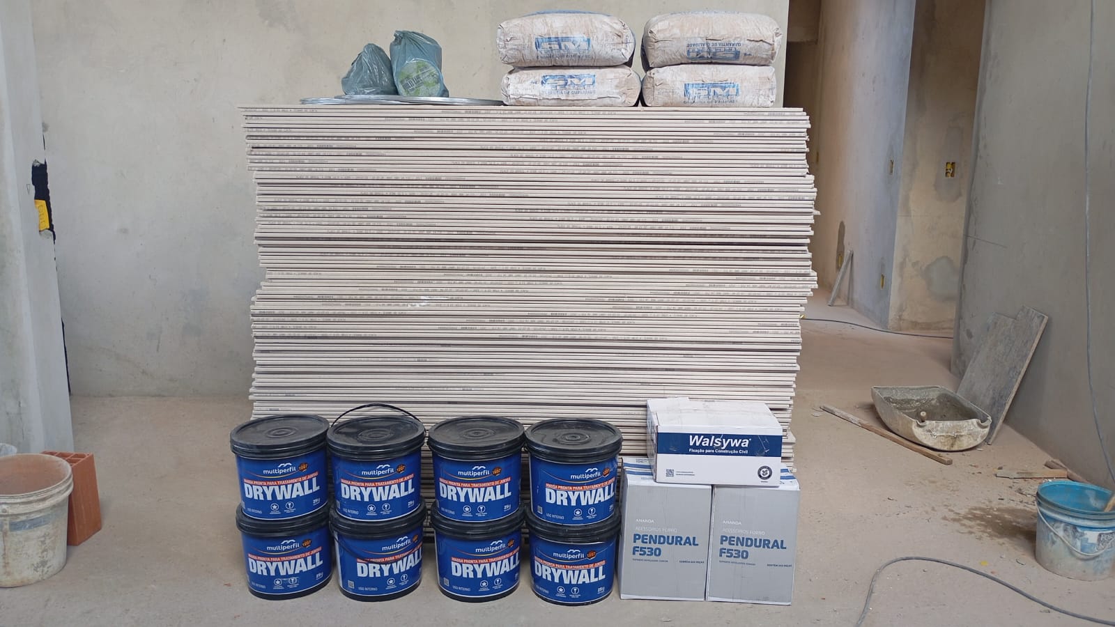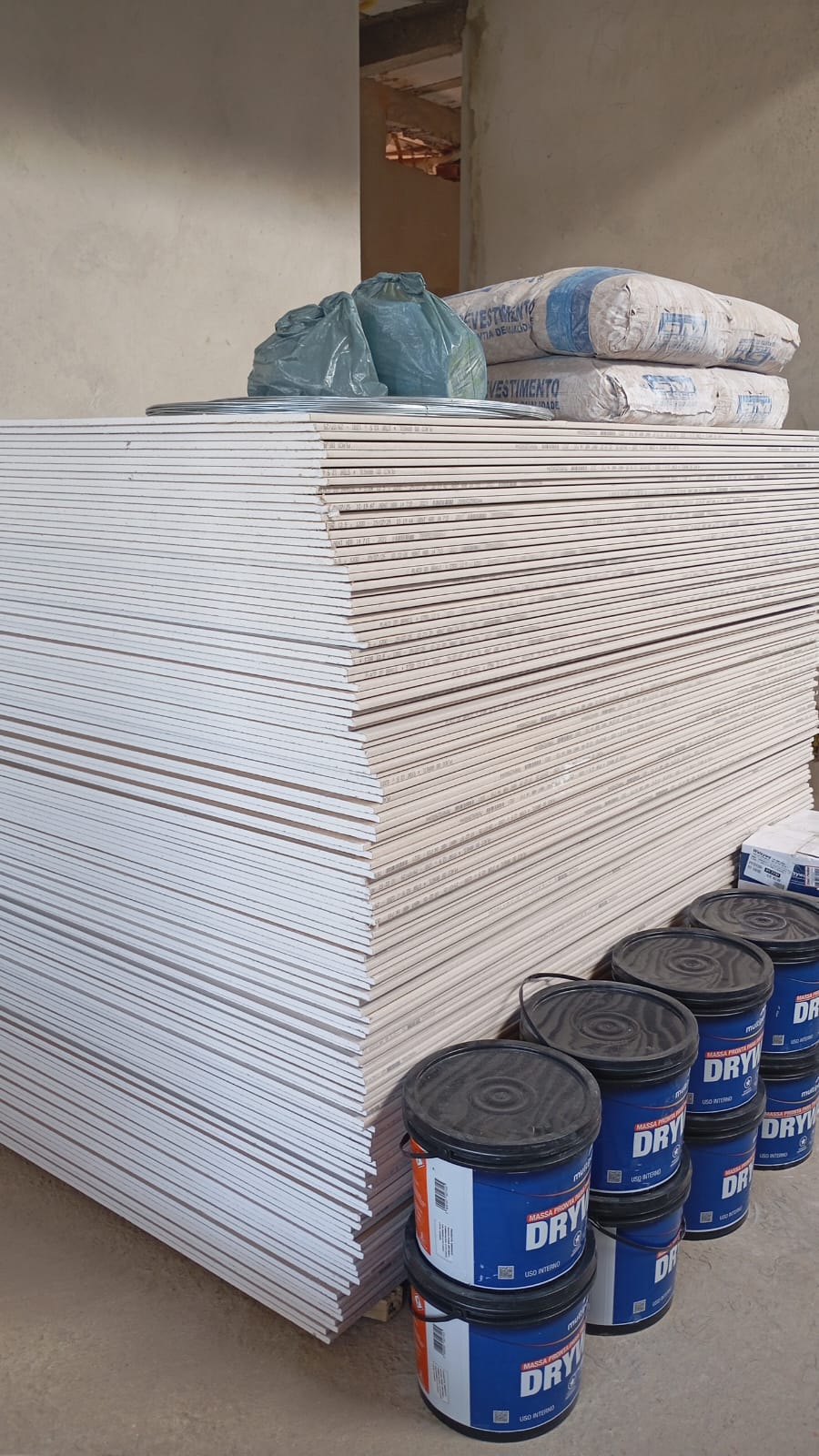Placas de Gesso Acartonado (Drywall): Essenciais para divisórias e revestimentos internos.